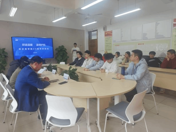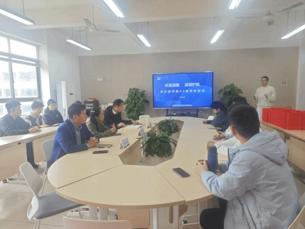 执行院长马增岭、党总支书记潘从义及学业导师李媛出席本次会议,为班级学子开展全方位的备考指导与暖心动员。