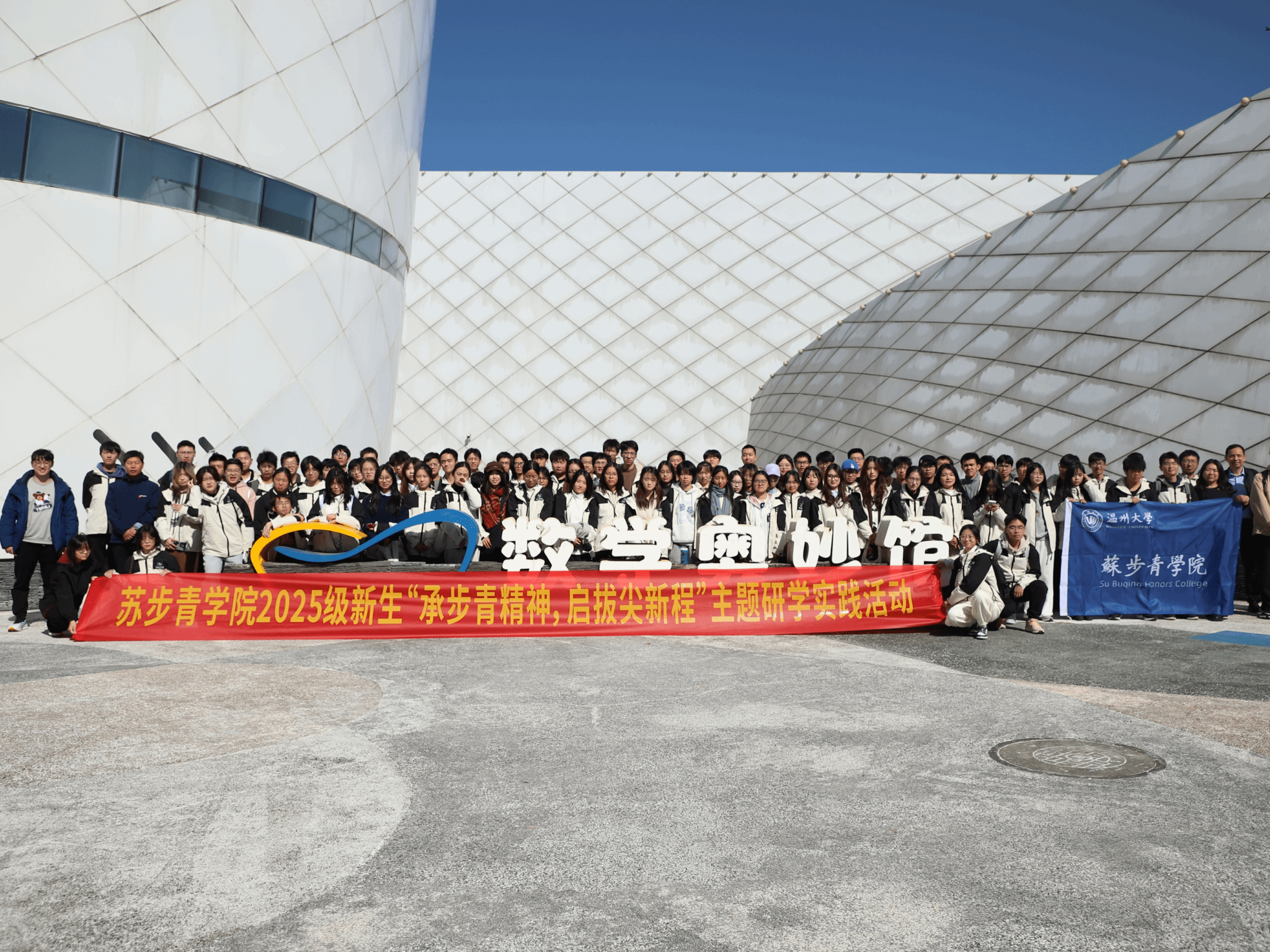 于11月29日组织2025级学生赴平阳腾蛟镇苏步青故里,开展了主题为“承步青精神,启拔尖新程”的研学活动,深入学习党的光辉历史,继承和发扬苏步青先生的科学家精神。